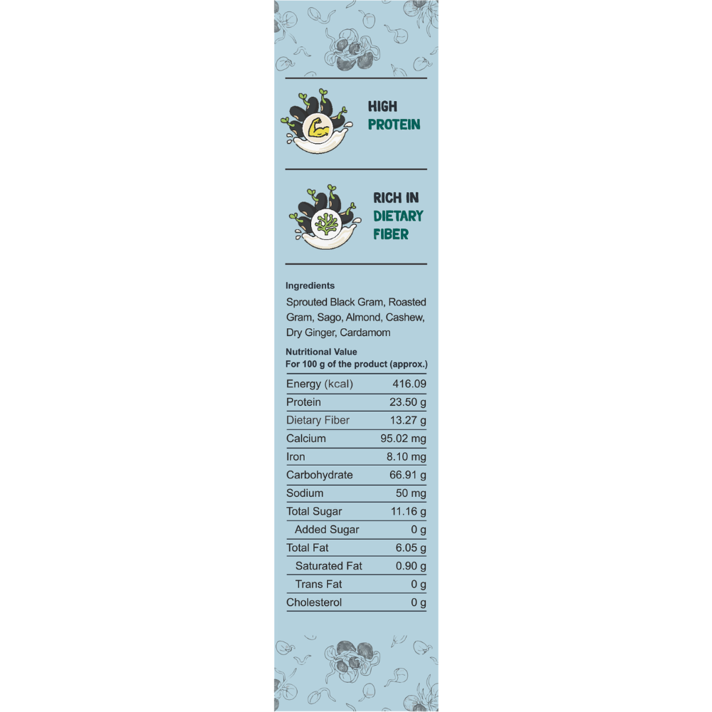 Ingredients: Sprouted Black Urad Dal, Sago, Roasted gram, Almonds, Cashew, Dry ginger, Cardamom