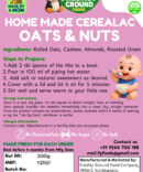 Description: Freshly Ground Foods presents Oats & Nuts, a delicious and nourishing combination of wholesome oats and premium nuts to kickstart your day with energy and vitality. Our blend features hearty rolled oats paired with crunchy cashews and almonds, offering a satisfying and nutritious option for breakfast. Whether enjoyed as a warm and comforting bowl of oatmeal, our Oats & Nuts mix is the perfect choice for Instant food on the go for the babies which can be prepared on the go only with the hot water.